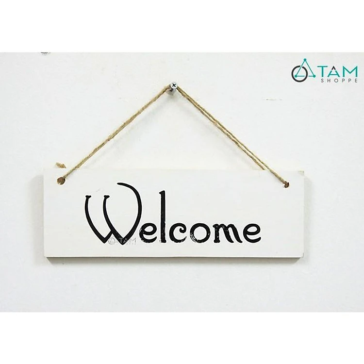 Bảng treo cửa WELCOME dùng để treo ngoài cửa phòng, trước cửa nhà hay trước shop của bạn. Những chiếc bảng treo trang trí hình dáng và màu sắc trẻ trung sẽ tạo cho căn nhà, căn phòng của bạn thêm xinh xắn, đáng yêu.Bảng welcome vẽ tay trắng đen đơn giản trên chất liệu gỗ nhỏ
