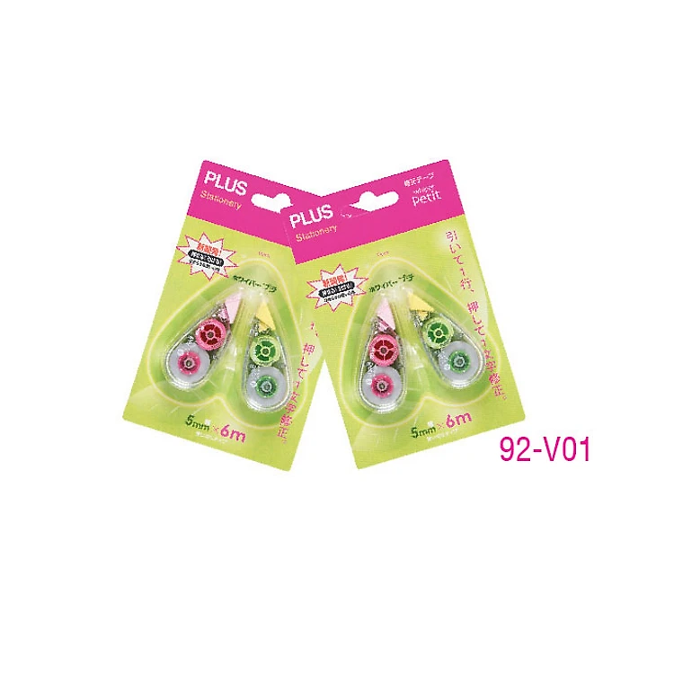 - 1 hộp Băng xóa PlusPetit 5 92-V01 gồm 2 băng xóa màu hồng và màu xanh.