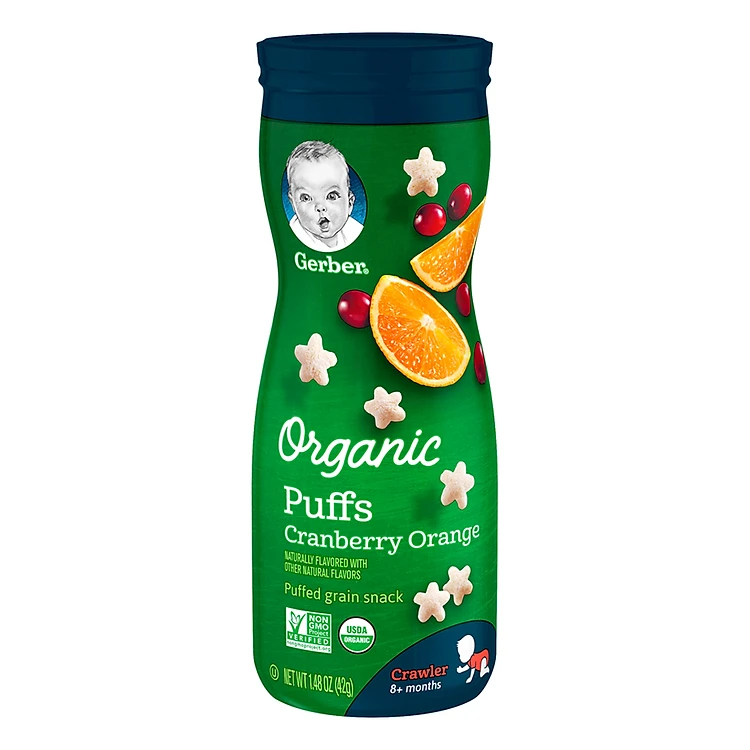 Bánh Gerber Organic vị Nam Việt Quất và Cam cam kết sử dụng nguồn nguyên hữu cơ 100% theo chứng nhận hiệp hội Hoa Kì Mỹ .Bánh kết hợp 2 loại trái cây Cam và Nam Việt Quất giàu vitamin C, Sắt và chất xơ. Đồng thời Nam Việt Quất là loại trái cây nổi tiếng giàu chất chống oxy hóa, canxi và nhiều loại khoáng chất.