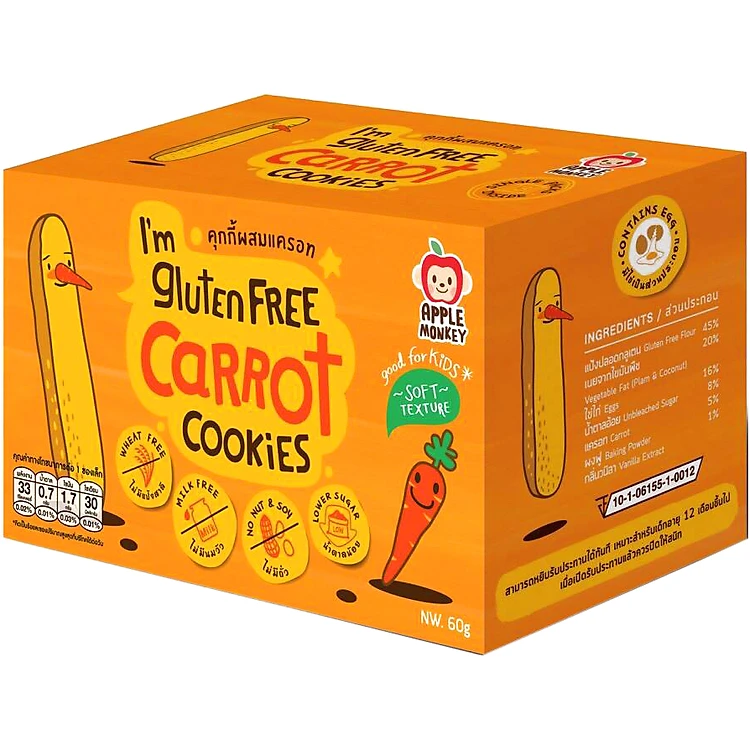 Bánh Ăn Dặm Không Chứa Gluten Apple Monkey Vị Cà Rốt