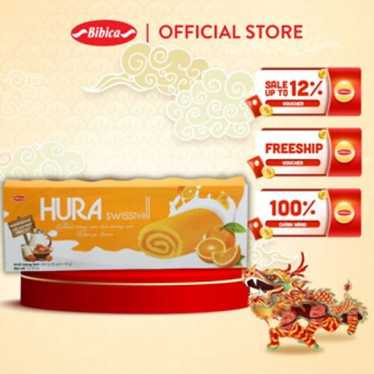 Bánh bông lan cuộn Hura Swissroll 360g - Bép ngậy mềm mịn chất lượng