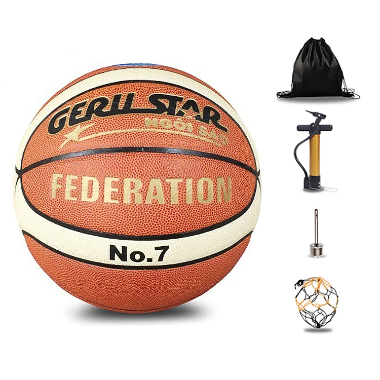 Banh Bóng Rổ Da Geru Star Federation - Size 7 - Tặng kèm Balo rút + Bơm tay + Kim Bơm + Túi lưới