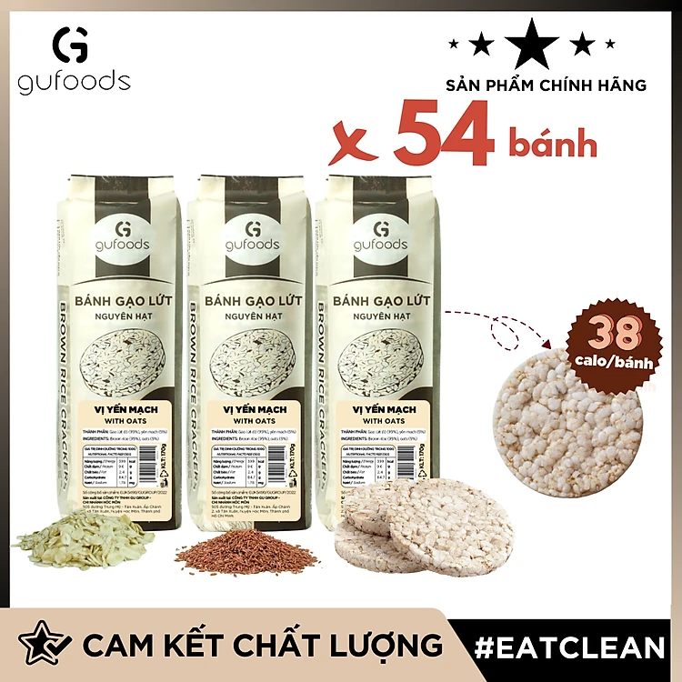 Bánh gạo lứt GUfoods vị Yến mạch - Không chiên dầu, Không đường, Lành mạnh, Phù hợp Eat clean, Ăn vặt healthy, Thực dưỡng, Tập gym, Thuần chay