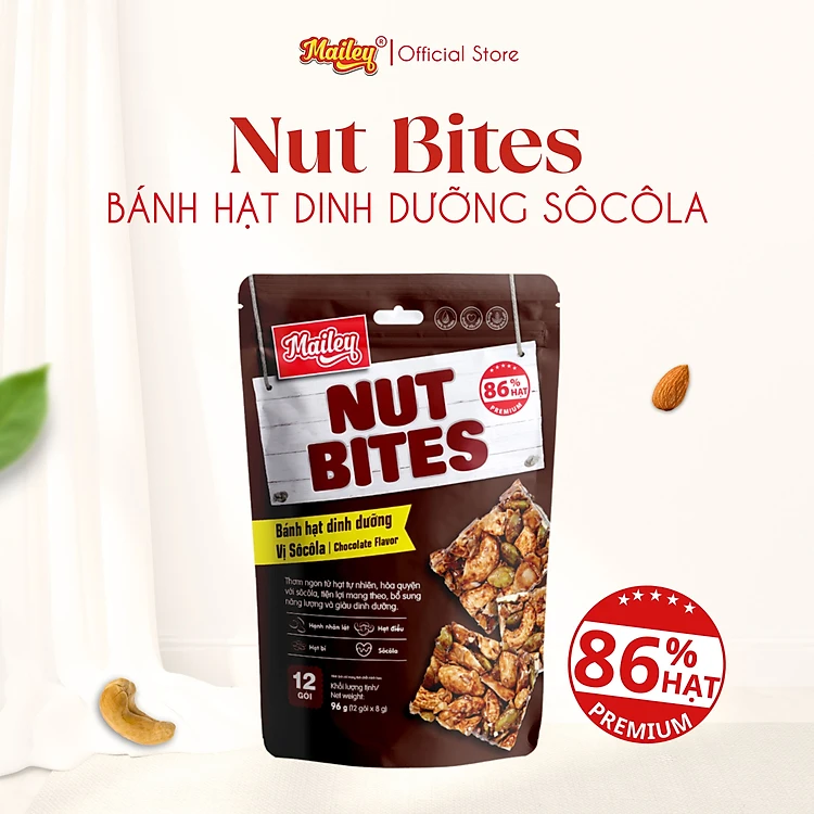 Bánh hạt dinh dưỡng NUT BITES Mailey túi 96g - thơm ngon từ hạt tự nhiên,tiện lợi và giàu dinh dưỡng