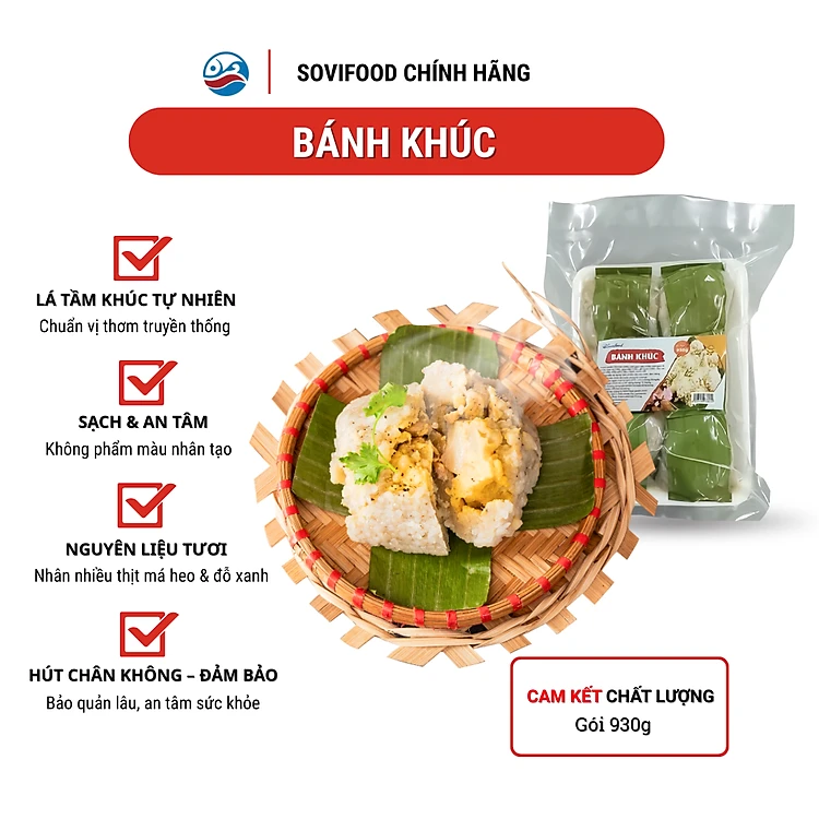 Bánh Khúc Sovifood - Xôi Khúc Lá Tầm Khúc Tự Nhiên, Nhân Nhiều Thịt Má Heo, Đỗ Xanh Bùi Béo - 930G