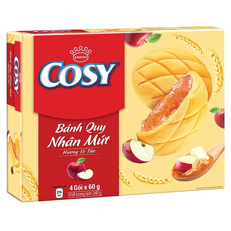 Bánh Kinh Đô Cosy Nhân Mứt Táo 4231904 (240g) giòn rụm thơm bơ bên ngoài ngậy vị trái cây bên trong.