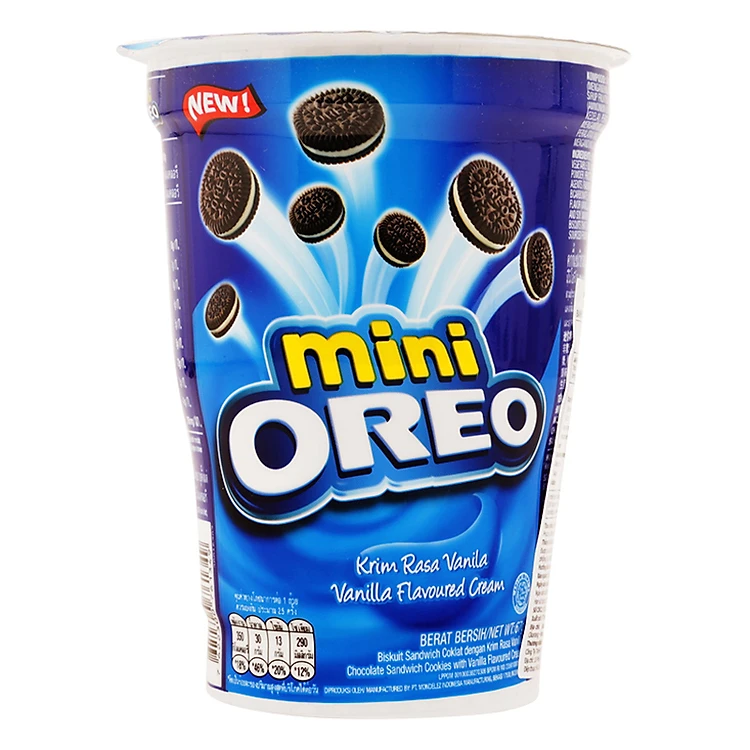 - Bánh Kinh Đô Mini Oreo Vị Vanilla được làm từ bột mì, đường kính, dầu cọ, sữa bột, bột cacao… cung cấp năng lượng và một số chất dinh dưỡng cần thiết cho cơ thể.