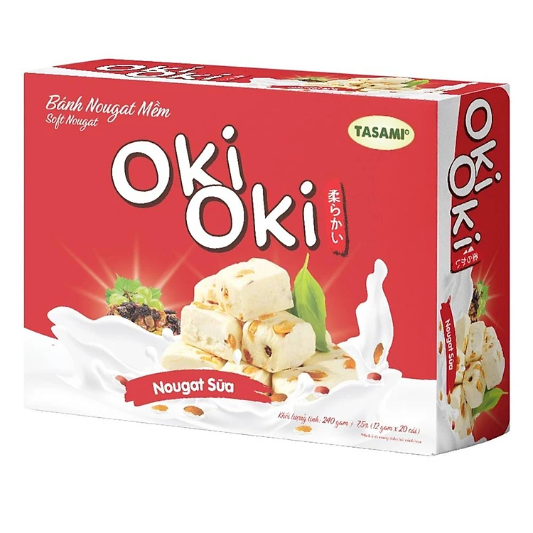 Bánh Nougat - Kẹo Hạnh Phúc Oki Oki Vị Sữa Ngọt Nhẹ Tự Nhiên Mềm Dẻo Thơm Ngon (240g/Hộp)