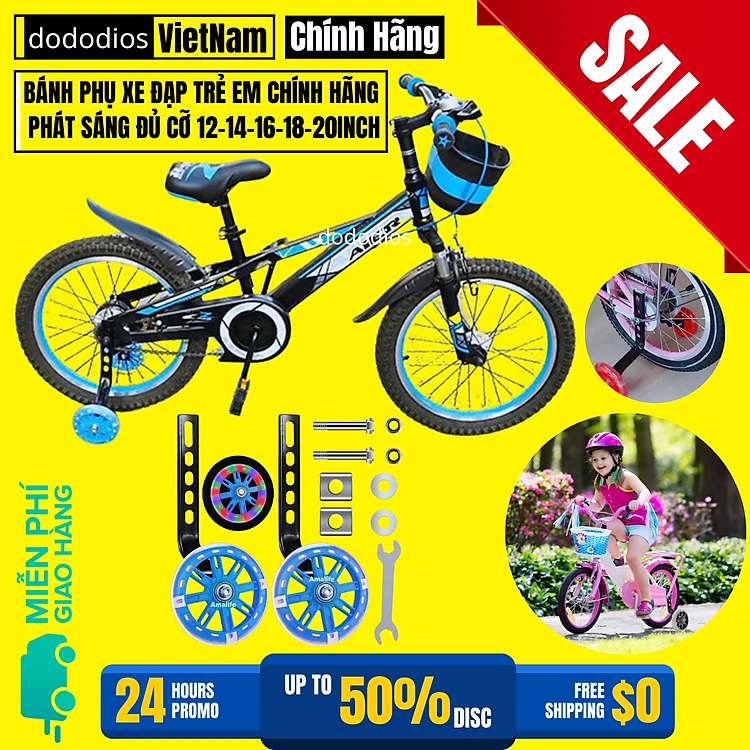 Bánh Phụ Xe Đạp Trẻ Em Phát Sáng Cân Bằng Chắc Chắn Dành Cho Các Bánh Xe Size 12 14 16 18 20inch Chính Hãng dododios