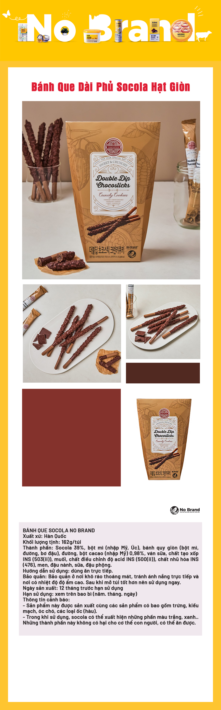 Thành phần: Socola 39%, bột mì (nhập Mỹ, Úc), bánh quy giòn (bột mì, đường, bơ đậu), đường, bột cacao (nhập Mỹ) 0,98%, ván sữa, chất tạo xốp INS (503(ii)), muối, chất điều chỉnh độ acid INS (500(ii)), chất nhũ hóa INS (476), men, đậu nành, sữa, đậu phộng.