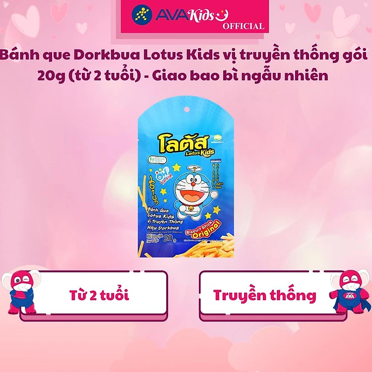 Bánh que Dorkbua Lotus Kids vị truyền thống gói 20g (từ 2 tuổi) - Giao bao bì ngẫu nhiên
