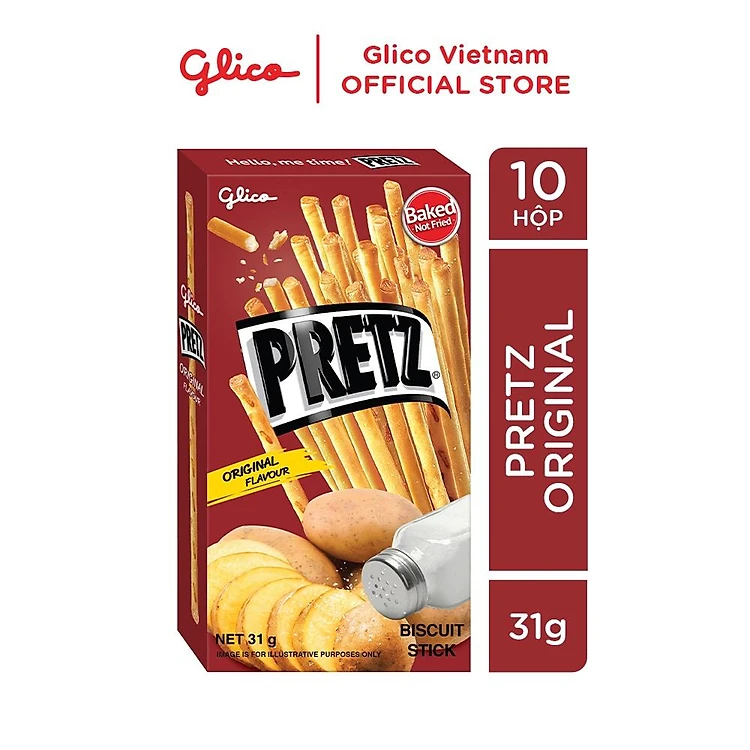 Pretz là nhãn hiệu snack que hàng đầu Nhật Bản. Que bánh thanh mảnh giòn giòn, phủ lớp gia vị khoai tây truyền thống. Đặc biệt NƯỚNG không chiên, cắn không rơi vụn, hộp nhiều Snack que tha hồ chia sẻ niềm vui cùng bạn bè khi Shopping, tham gia thể thao, xem phim …