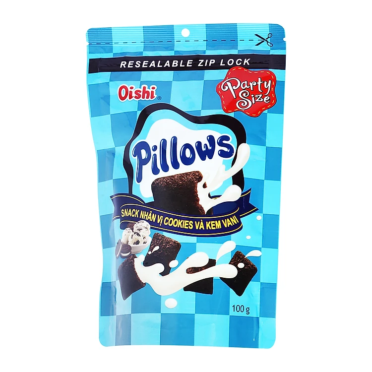 Bánh Snack Oishi Pillows Nhân Vị Cookies Và Kem Vani 100G