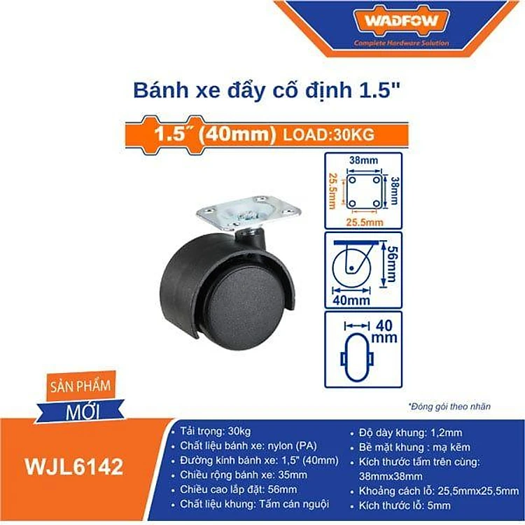 BÁNH XE ĐẨY CỐ ĐỊNH 1.5 INCH WJL6142 WADFOW - HÀNG CHÍNH HÃNG