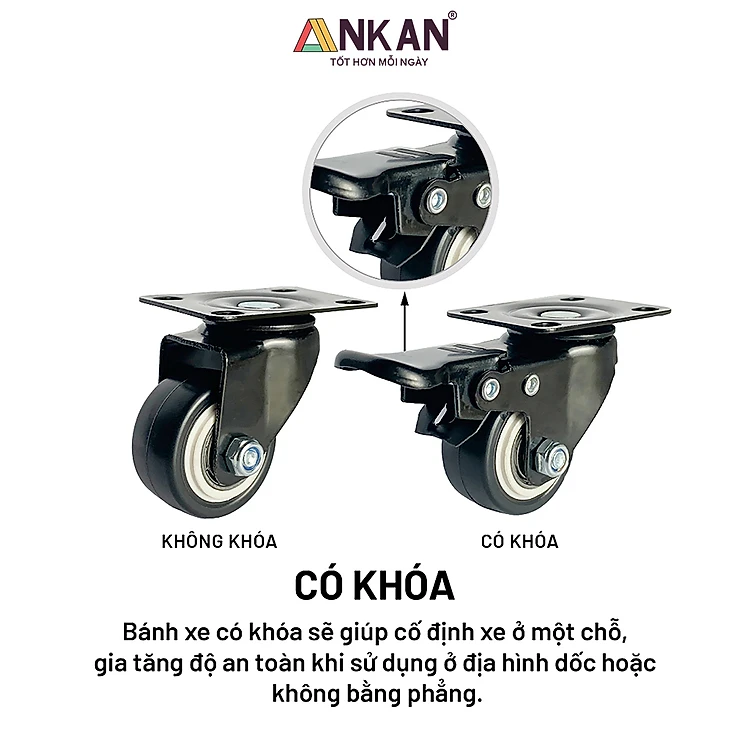 Bánh Xe Đẩy Hàng Có Bạc Đạn Và Khóa ANKAN, Bánh Xe Nhựa PVC Mini 40mm