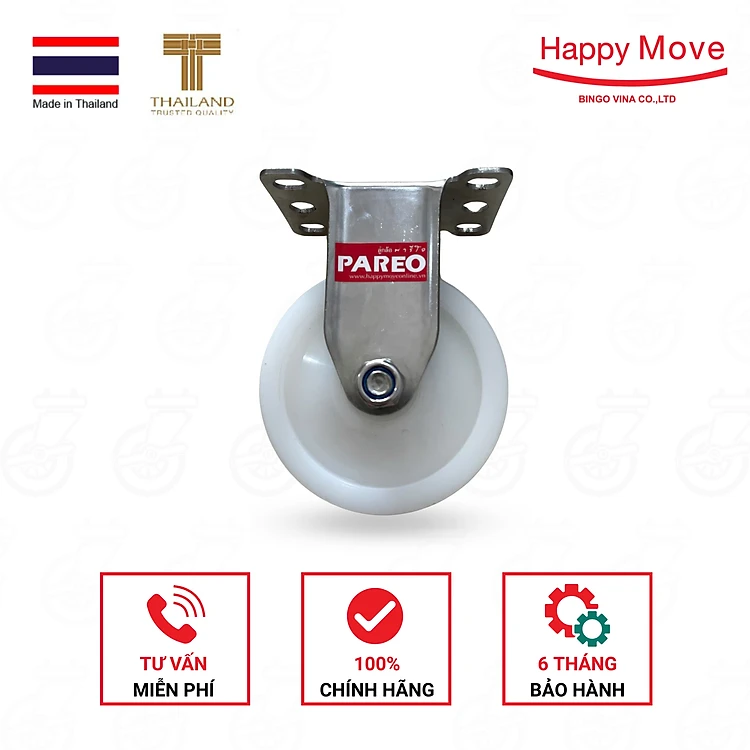 Bánh xe đẩy Nylon càng Inox 304 cố định 100x32mm - PAREO