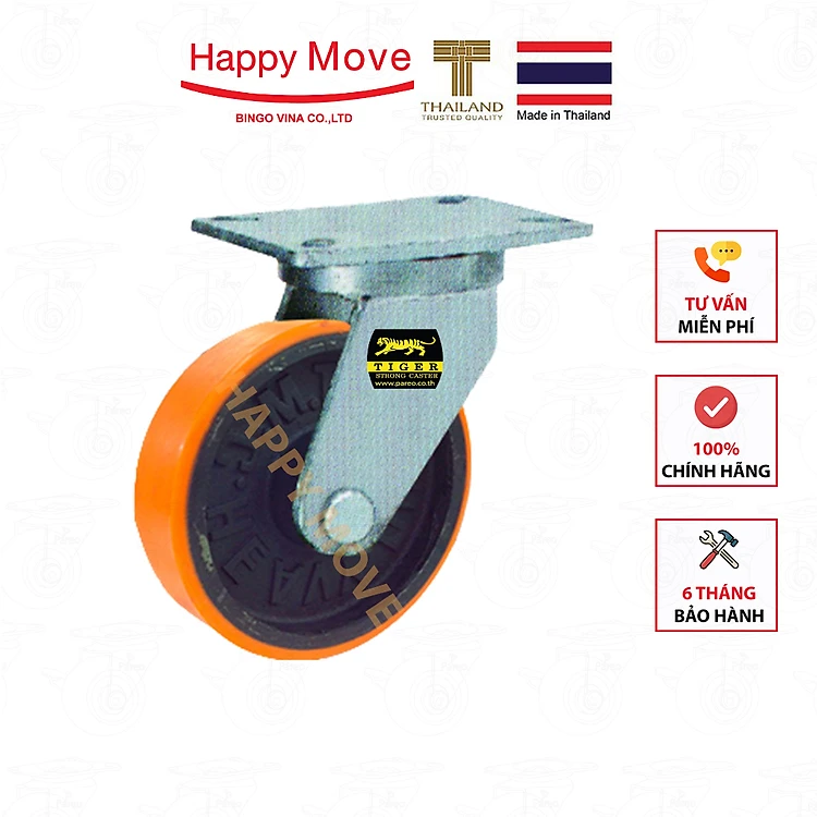 Bánh xe đẩy siêu tải PU càng xoay 150mm - Happy Move Thái Lan