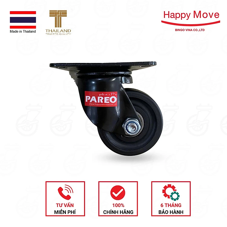 Bánh xe Nylon đen càng xoay, xoay có khóa 75mm - PAREO