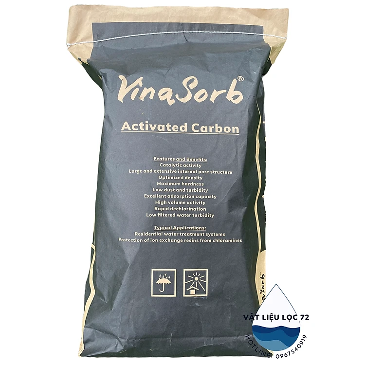 Bao 25kg Than hoạt tính lọc nước, Thương hiệu Vina Sorb sản xuất 100% từ gáo dừa tại Việt Nam, Model Vina Sorb KOAL PLUS