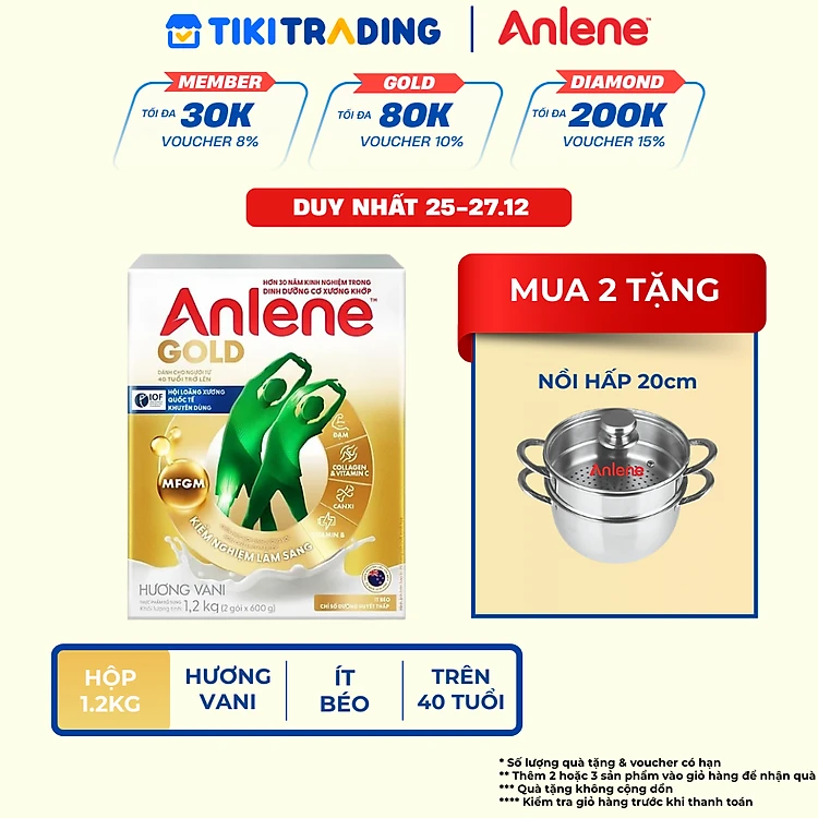 Bao bì mới - Sữa Bột Anlene Gold Hương Vanilla (Hộp giấy 1200g)