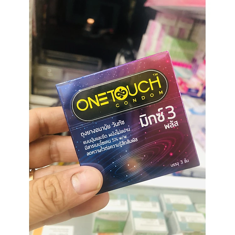 Bao cao su 3 trong 1 Thái Lan - ONETOUCH MIXX 3 PLUS (Gân, Hạt nổi, Kéo dài thời gian - Hộp 3 cái)