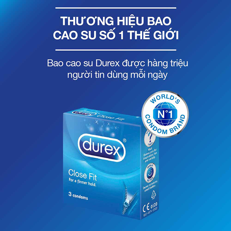 - Bao Cao Su Durex Close Fit - Hộp 3 Bao - 100790274 giúp mọi người lại gần nhau hơn, với thiết kế ôm khít, tạo cảm giác thoải mái khi quan hệ.