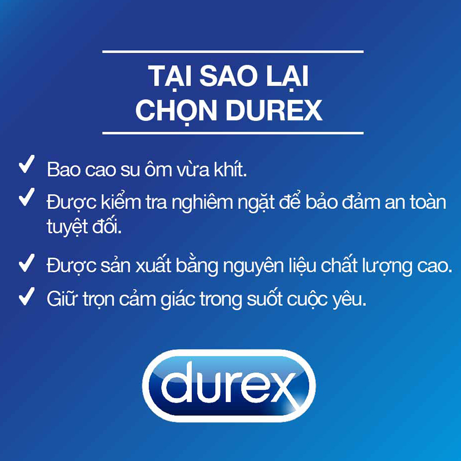 Bao Cao Su Durex Close Fit - Hộp 3 Bao - 100790274 - Cuộc sống tình dục của bạn rất quan trọng. Tình dục là bản năng và nhu cầu tự nhiên của con người, ngoài chức năng duy trì nòi giống thì đời sống tình dục viên mãn còn mang nhiều lợi ích cho sức khỏe. Vì vậy bạn cần hiểu rõ về cấu trúc tình dục của cơ thể mình, các phương pháp tránh thai thích hợp và nhất là các bệnh lây nhiễm qua đường tình dục để bảo vệ cho chính mình. Bao cao su là một lựa chọn tối ưu, mang lại hiệu quả cao trong phòng tránh các bệnh lây lan qua đường tình dục và ngừa thai hiệu quả khi sử dụng đúng cách. Đó là phương pháp tối ưu để giúp cho bạn gia tăng đời sống tình cảm và đạt hiệu quả an toàn nhất.
