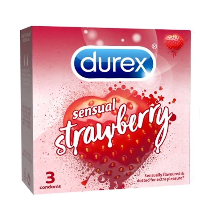 Bao Cao Su Durex Strawberry (3s) - Gai Nhỏ - Hương Dâu - Nhập Khẩu Thái Lan