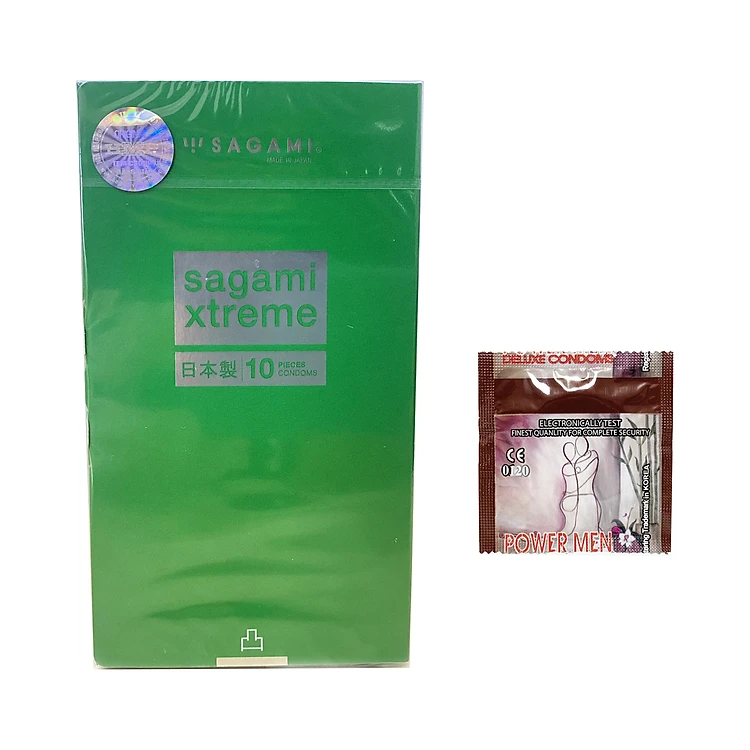 Bao Cao Su Gai Chấm Nổi Li Ti Sagami Xtreme Green (Hộp 10 Chiếc) + Bcs Power Men (1 Chiếc) - Hàng Chính Hãng 100% - Che Tên Sản Phẩm
