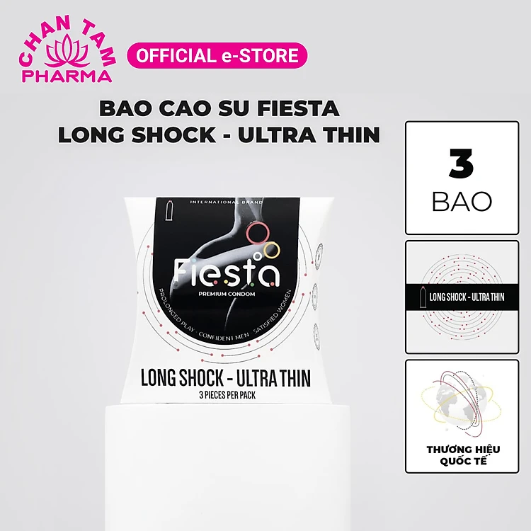 Bao Cao Su Fiesta là một trong những thương hiệu bao cao su cao cấp hàng đầu thế giới được cấp giấy phép bởi DKT International. Sản phẩm được sản xuất tại Việt Nam, phân phối chính thức bởi Công ty Dược Phẩm Chân Tâm.