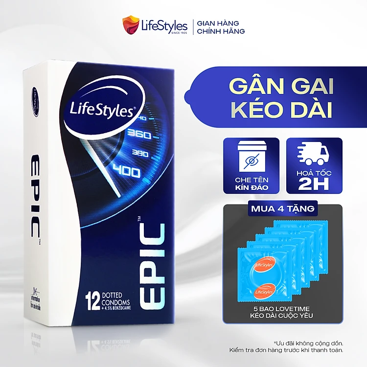 Bao cao su có gai và kéo dài thời gian LifeStyles Epic hộp 12 bao