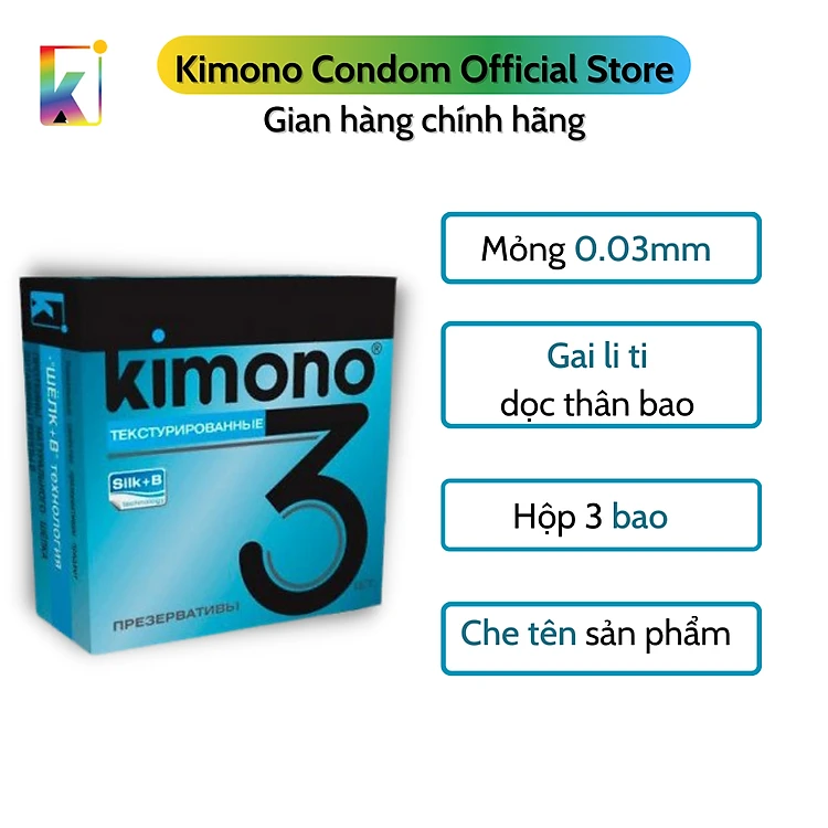 Bao cao su Kimono Blue Siêu mỏng 0.03mm - Gai nổi - Hộp 3 bao