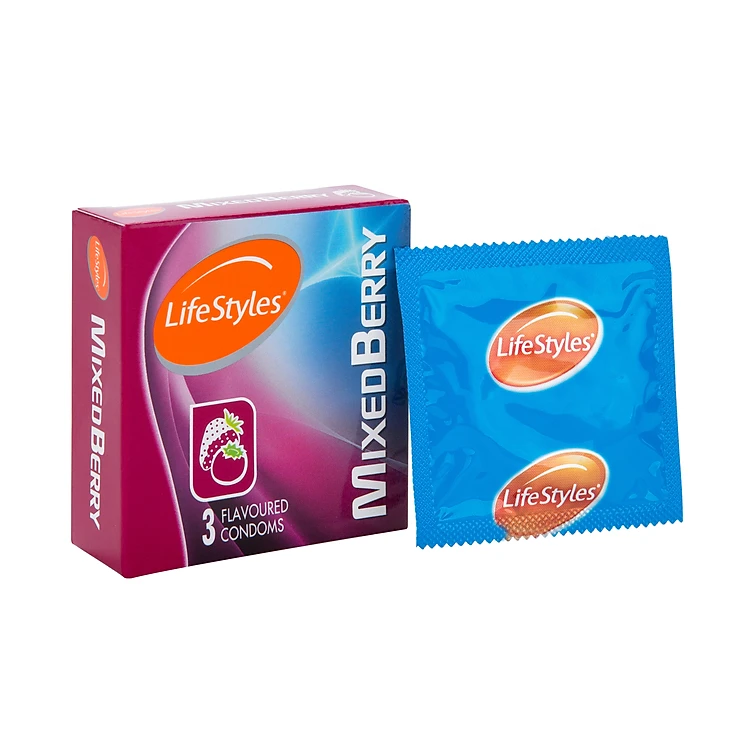 Bao cao su LifeStyles Mixed Berry Hương dâu 3 loại làm từ cao su thiên nhiên cao cấp ( 3 bao / Hộp ) - Xuất xứ Úc ( Hàng Chính Hãng )
