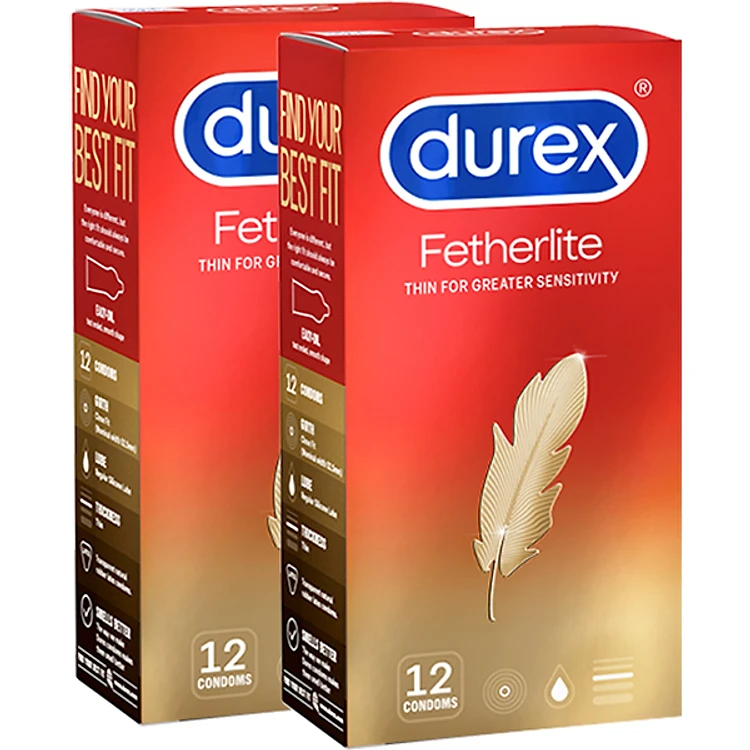 Bao Cao Su Mỏng Cố Định Vị Trí Durex Fetherlite Hộp 12s + Hộp 12s