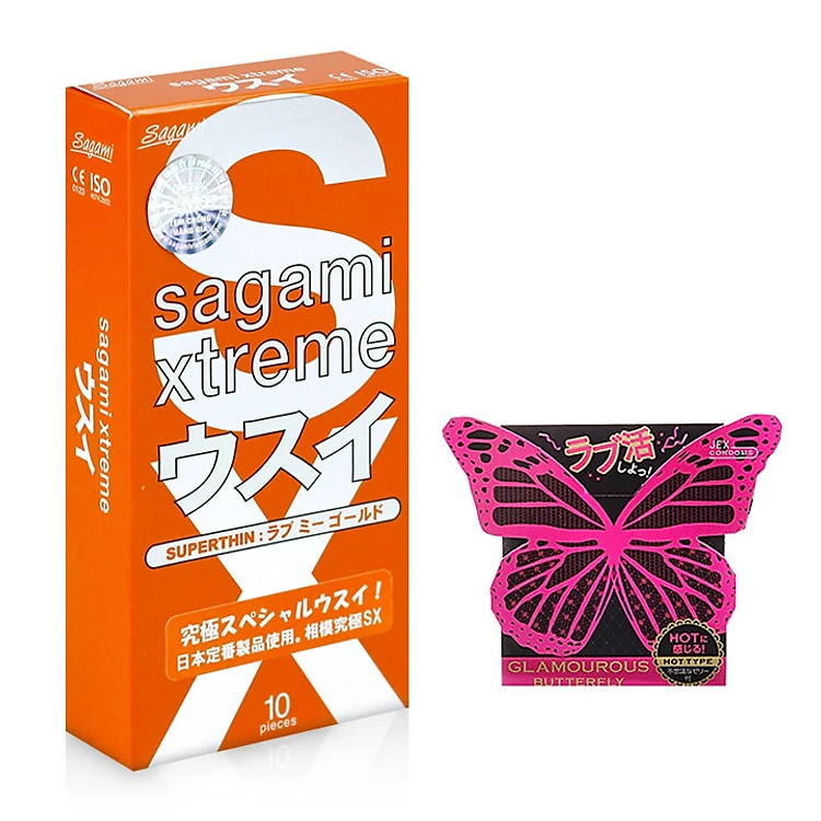 Bao Cao Su Mỏng Trơn Không Mùi Sagami Love Me Orange (Hộp 10 Chiếc) - Tặng Bcs Jex Glamourous Butterfly (1 Chiếc) - Hàng Chính Hãng 100% - Che Tên Sản Phẩm - SHOP ADAM