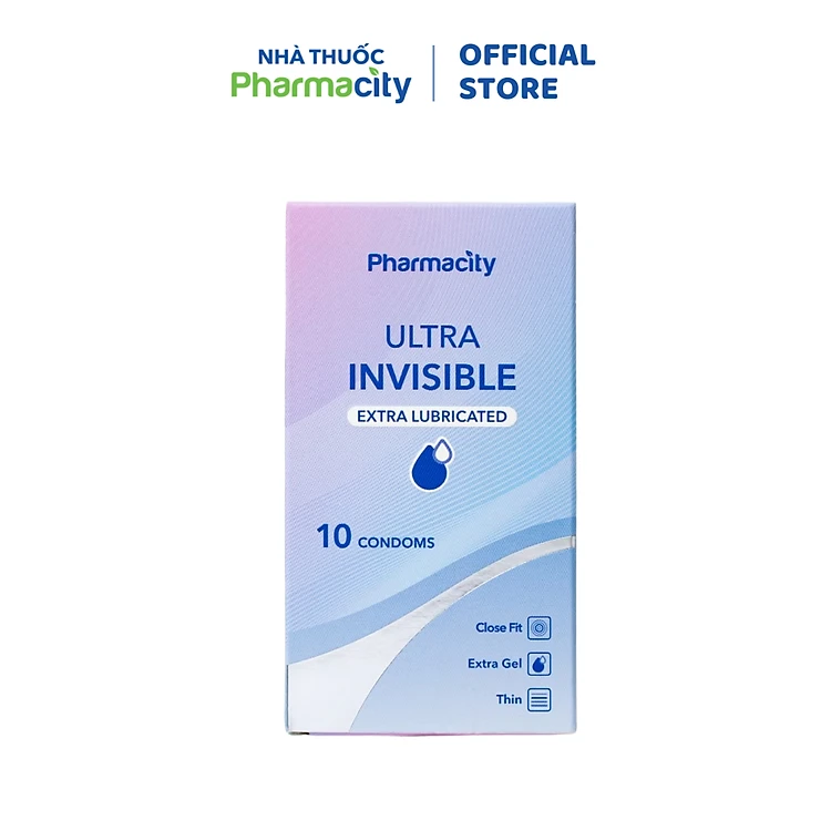 Bao cao su Pharmacity Ultra Invisible - Extra Lubricated (Hộp 10 cái)