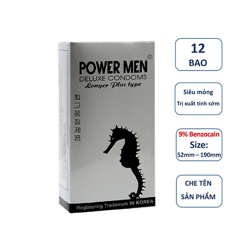 Bao cao su Powermen cá ngựa bạc - kéo dài thời gian - Hộp 12 chiếc
