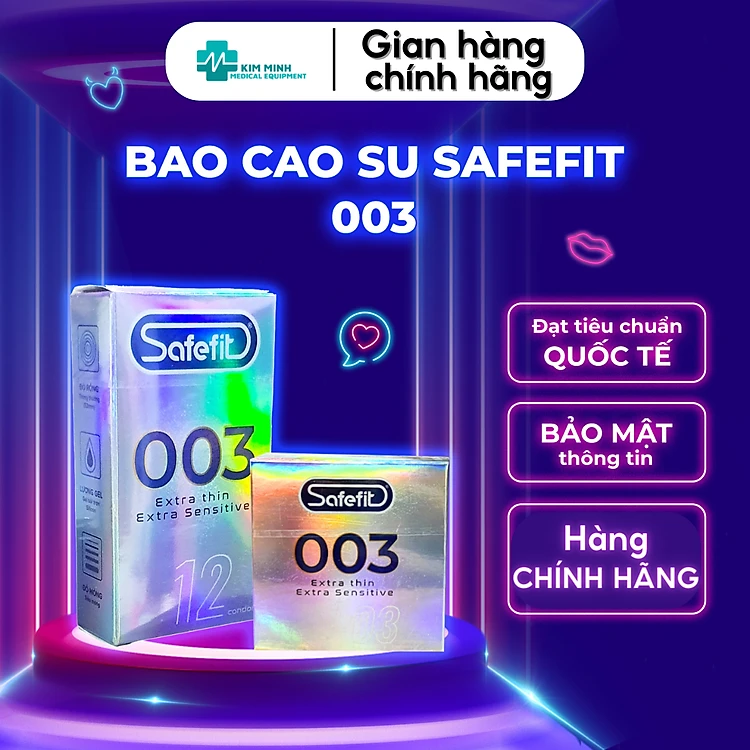 Bao cao su Safefit 003 hộp 12 chiếc, hộp 3 chiếc siêu mỏng