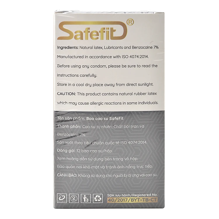 - Bao cao su SafeFit 4 in 1 được sản xuất từ nguồn latex cao cấp nhất và được sản xuất theo dây chuyền đáp ứng tiêu chuẩn Đức nên sản phẩm đạt những tiêu chuẩn ISO khắt khe nhất trong việc sản xuất là ISO 13485 và ISO 4074.