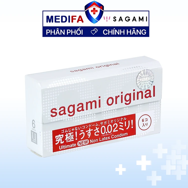 Bao cao su Sagami 002 - Siêu mỏng - Non Latex - Hộp 6 chiếc