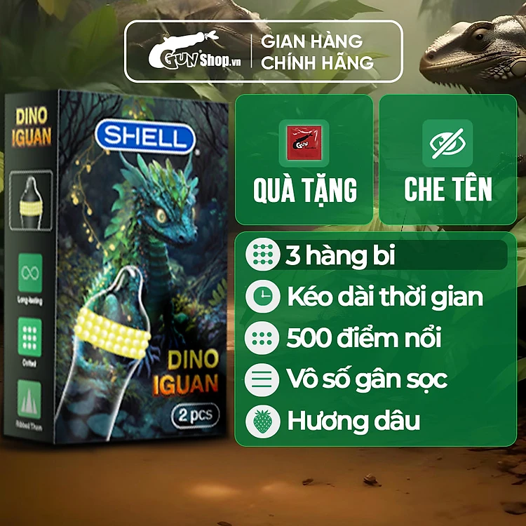 Bao cao su Shell Dino Iguan - Hộp 2 cái - 1 bao 2 vòng bi siêu lớn + 1 bao Shell Performax
