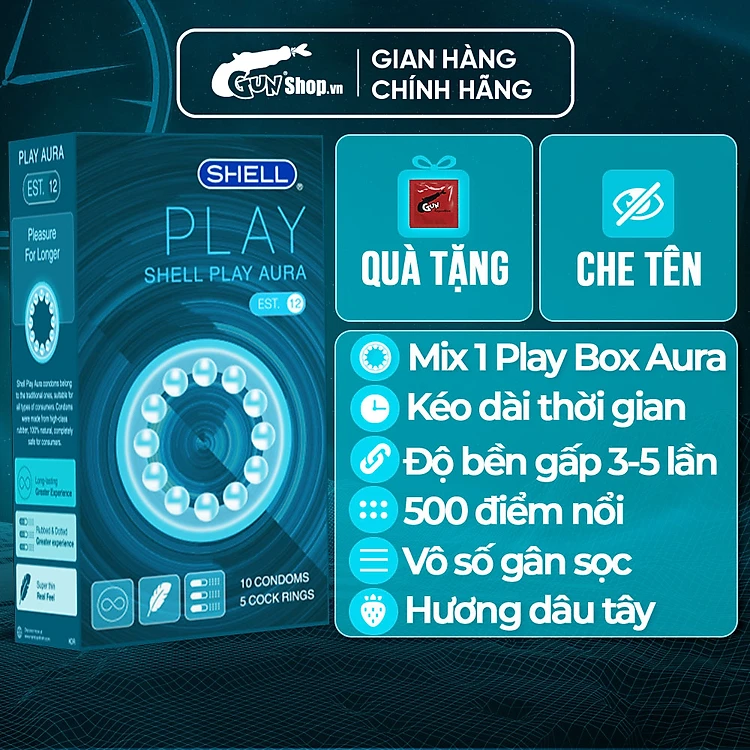 Bao cao su Shell Play Aura - Tổng hợp 6 tính năng - Hộp 10 cái + 1 Play Box Aura