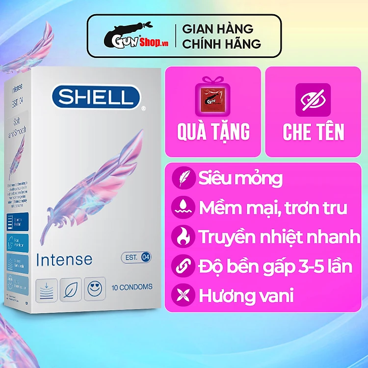 Bao cao su Shell Intense - Siêu mỏng 0.04mm - Hộp 10 cái