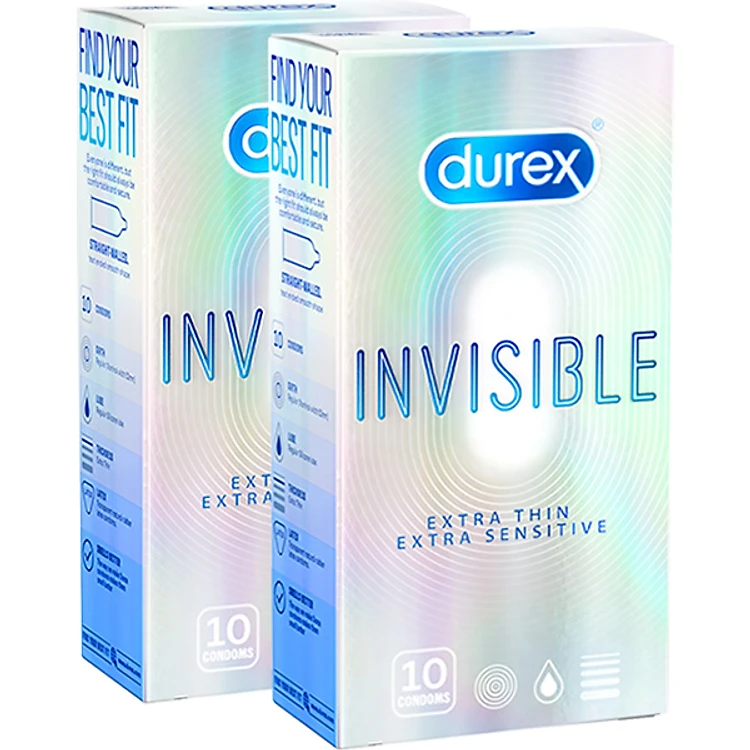 Bao Cao Su Siêu Mỏng Durex Invisible Hộp 10s + Hộp 10s