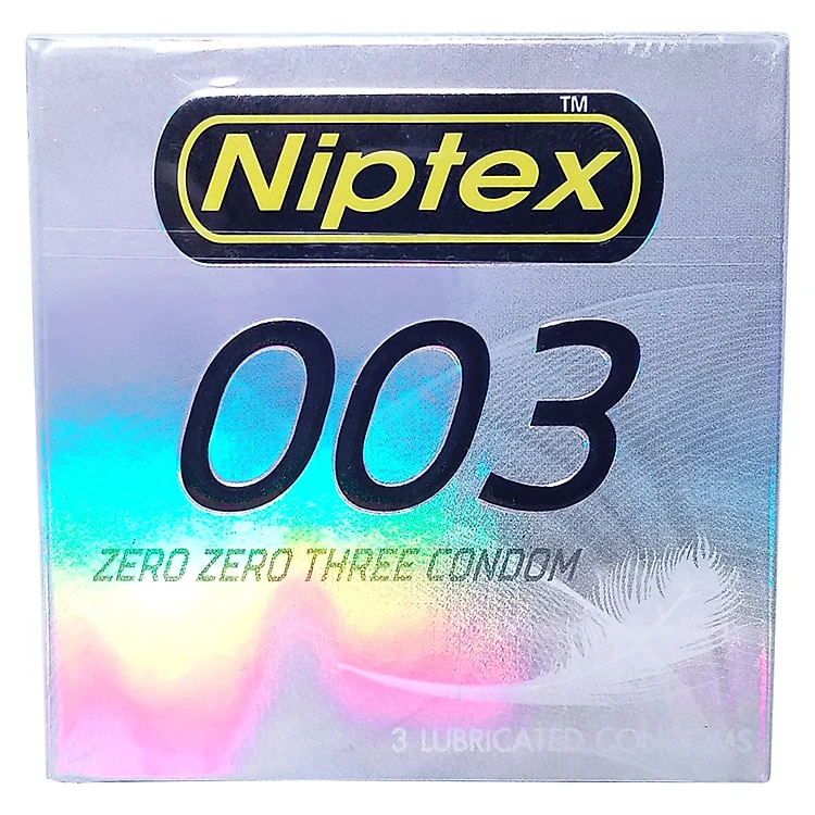 - Bao Cao Su Siêu Mỏng Niptex 003 (Hộp 3 Cái) được sản xuất hoàn toàn bằng chất liệu mủ cao su thiên nhiên.