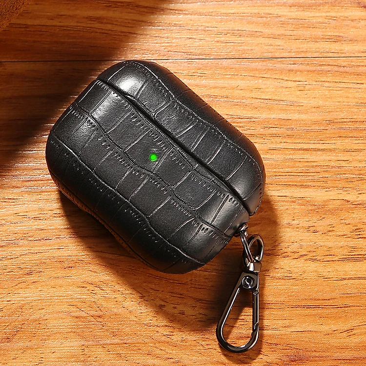 Bao Case da PU phủ nhung dệt vân Cá Sấu cho Airpods Pro 2 / Airpods 4 / Airpods Pro 3 - Hàng Chính Hãng