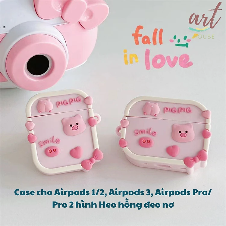 Bao Case Hình Heo hồng và trái tim dành cho Airpods 1,2/ Airpods Pro/ Airpods Pro 2/ Airpods 3_ Hàng chính hãng