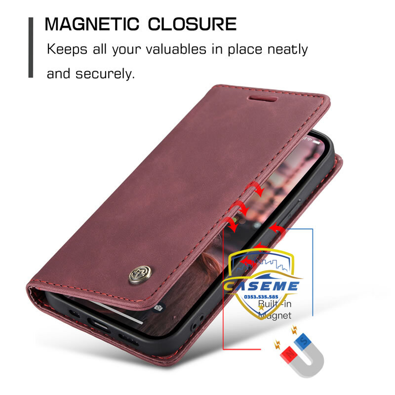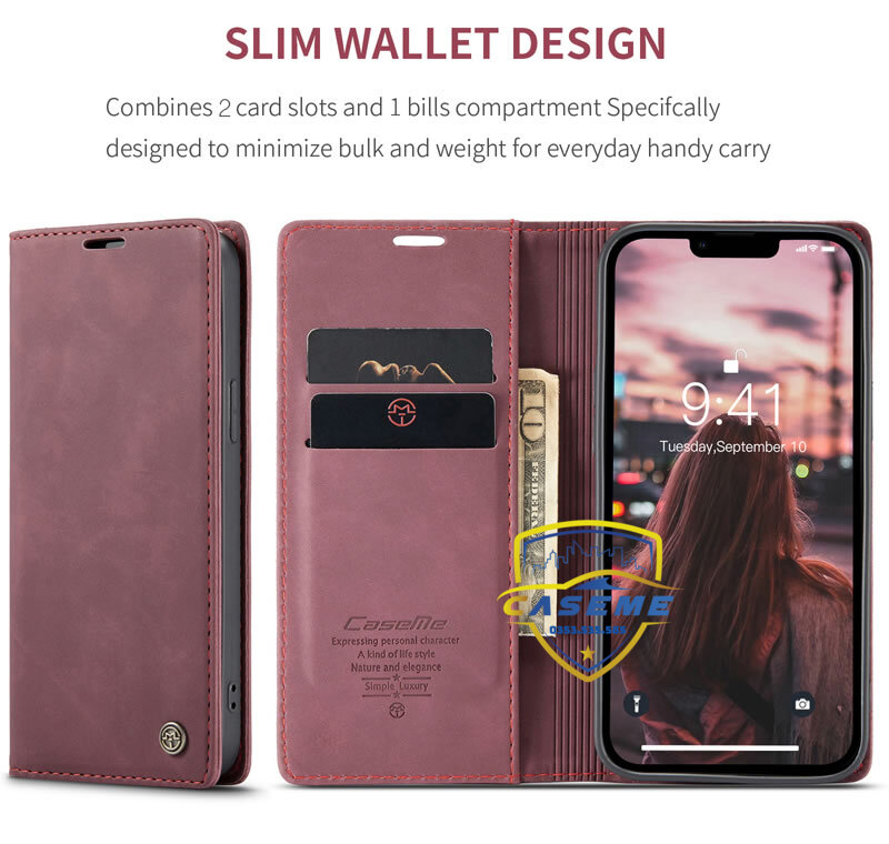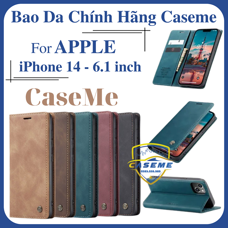 Bao da bò thật dạng ví chính hãng Caseme dành cho iPhone 14 2 trong 1 này !