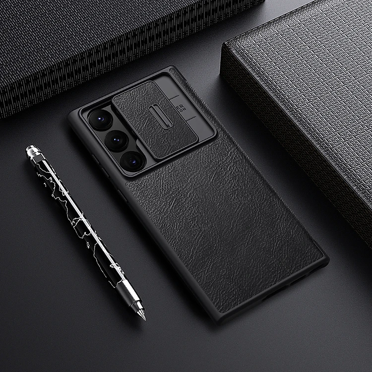 Bao Da Bò Thật Dành Cho Samsung Galaxy S23 Ultra, S23, S23 Plus Chính Hãng Nillkin Qin Cao Cấp Chống sốc, có ngăn cài thẻ - Hàng Chính hãng