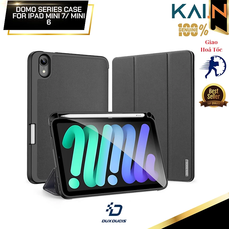 Bao da cho iPad Mini 7/ Mini 6 Dux Ducis Domo Series có khe cắm bút, tự động tắt mở_ Hàng chính hãng